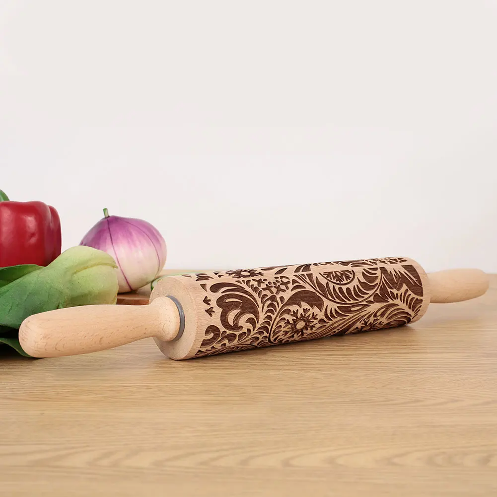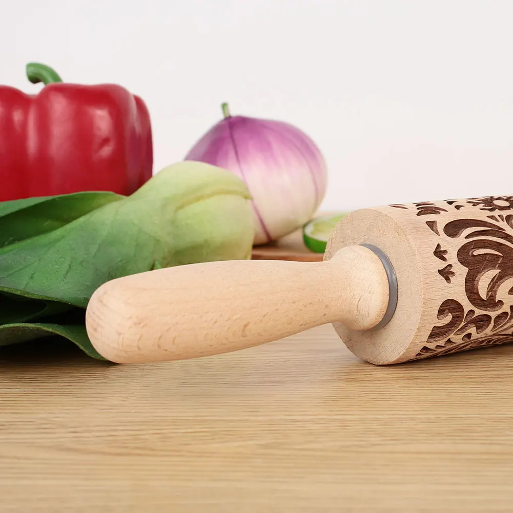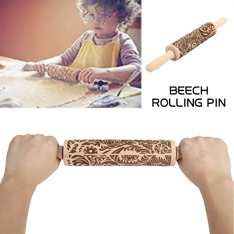 HIGH QUALITY Embossing Mold Rolling Pin Wood Christmas Gingerbread DIY Carving Party Bakng Mold Beautiful Cookie